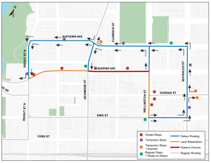 Find a quick overview of significant detours and stop closures.