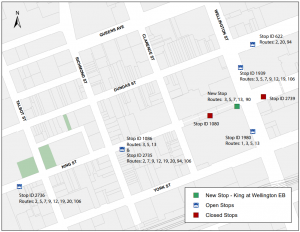 Find a quick overview of significant detours and stop closures.